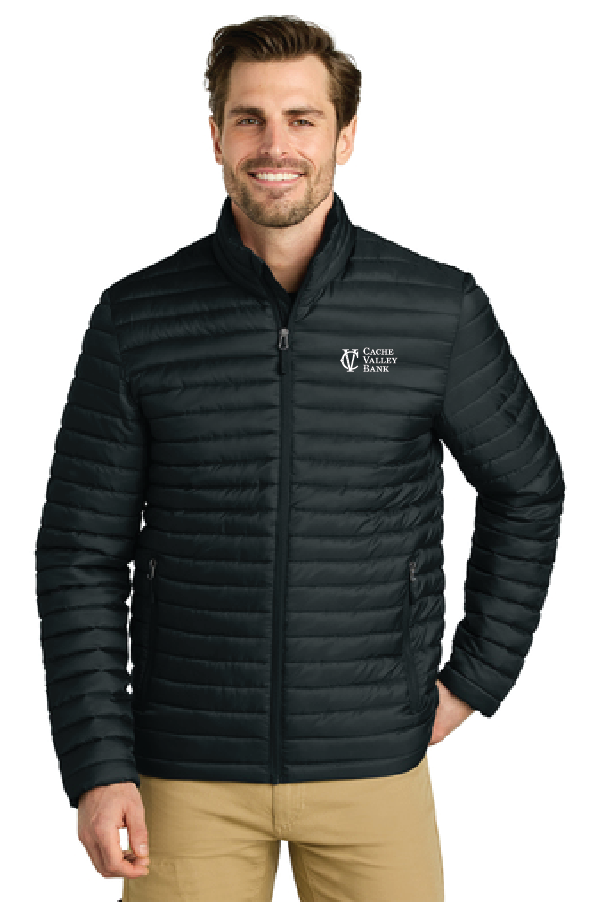 Packable Quilted Full-Zip EB514Eddie Bauer Packable Quilted Full-Zip EB514Designed with traditional quilt lines this insulated full-zip is built for warmth and weather-resistant performance. Features include full-length interior storm flap with chin guard exposed molded zippers with Eddie Bauer logo pulls elastic cuffs zippered hand pockets and a slight drop tail hem. Includes an embroidery access pocket. Packs into zippered left hand pocket. Contrast Eddie Bauer heat transfer logo on left sleeve. Made of 100% polyester ripstop and 5.9-ounce 100% polyester blown fill. PU coating on back of shell. Durable water-repellent (DWR) finish. |