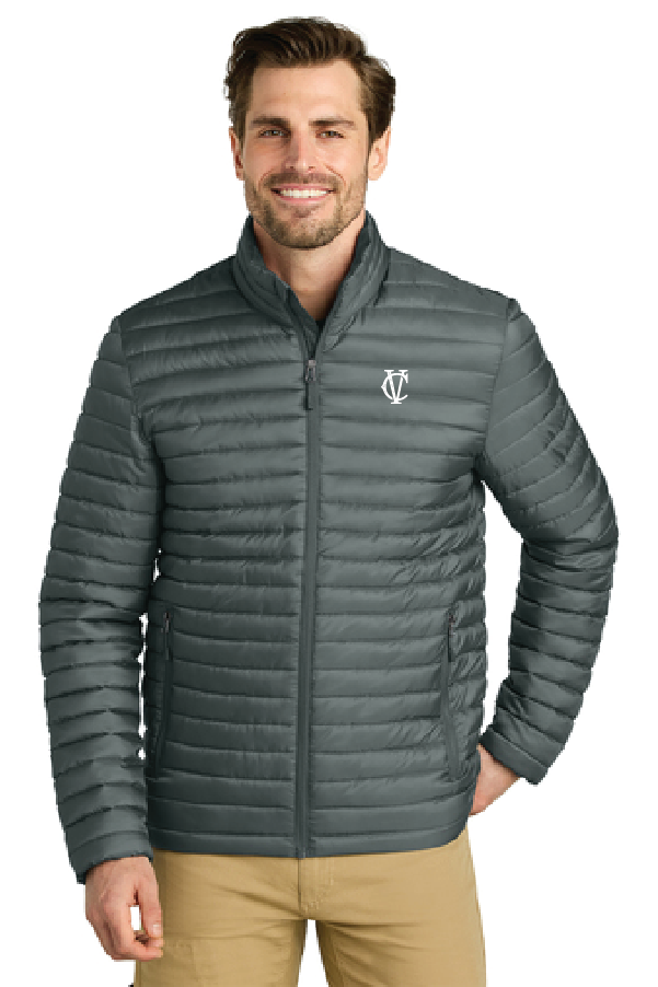 Packable Quilted Full-Zip EB514Eddie Bauer Packable Quilted Full-Zip EB514Designed with traditional quilt lines this insulated full-zip is built for warmth and weather-resistant performance. Features include full-length interior storm flap with chin guard exposed molded zippers with Eddie Bauer logo pulls elastic cuffs zippered hand pockets and a slight drop tail hem. Includes an embroidery access pocket. Packs into zippered left hand pocket. Contrast Eddie Bauer heat transfer logo on left sleeve. Made of 100% polyester ripstop and 5.9-ounce 100% polyester blown fill. PU coating on back of shell. Durable water-repellent (DWR) finish. |