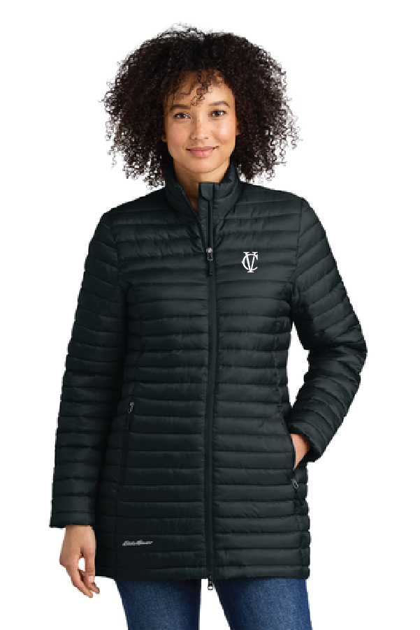 Women s Packable Quilted Full-Zip EB515Eddie Bauer Women s Packable Quilted Full-Zip EB515Designed with traditional quilt lines this insulated full-zip is built for warmth and weather-resistant performance. Features include full-length interior storm flap with chin guard exposed molded zippers with Eddie Bauer logo pulls elastic cuffs zippered hand pockets and a slight drop tail hem. Includes an embroidery access pocket. Packs into zippered left hand pocket. Longer length with a double zipper. Contrast Eddie Bauer heat transfer logo on right hem. Made of 100% polyester ripstop and 5.4-ounce 100% polyester blown fill. PU coating on back of shell. Durable water-repellent (DWR) finish. |