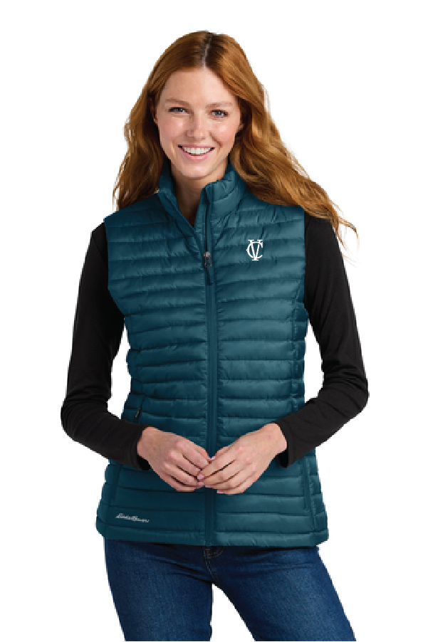 Women s Packable Quilted Vest EB517Eddie Bauer Women s Packable Quilted Vest EB517Designed with traditional quilt lines this insulated vest is built for warmth and weather-resistant performance. Features include full-length interior storm flap with chin guard exposed molded zippers with Eddie Bauer logo pulls zippered hand pockets and a slight drop tail hem. Includes an embroidery access pocket. Packs into zippered left hand pocket. Contrast Eddie Bauer heat transfer logo on right hem. Made of 100% polyester ripstop and 3-ounce 100% polyester blown fill. PU coating on back of shell. Durable water-repellent (DWR) finish. |