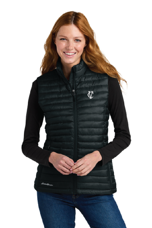 Women s Packable Quilted Vest EB517Eddie Bauer Women s Packable Quilted Vest EB517Designed with traditional quilt lines this insulated vest is built for warmth and weather-resistant performance. Features include full-length interior storm flap with chin guard exposed molded zippers with Eddie Bauer logo pulls zippered hand pockets and a slight drop tail hem. Includes an embroidery access pocket. Packs into zippered left hand pocket. Contrast Eddie Bauer heat transfer logo on right hem. Made of 100% polyester ripstop and 3-ounce 100% polyester blown fill. PU coating on back of shell. Durable water-repellent (DWR) finish. |