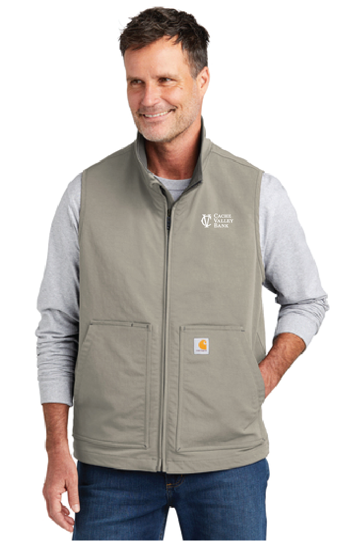 Super Dux Soft Shell Vest CT105535Carhartt Super Dux Soft Shell Vest CT105535This soft shell vest combines iconic Carhartt looks with unbeatable weather protection. The nylon is 35% lighter than traditional duck but with twice the abrasion resistance.8.1-ounce 97/3 nylon/elastane100% polyester stretch taffeta liningRain Defender durable water repellentWind Fighter technology tames windRugged Flex technology for ease of movementReverse coil center front zipper with kissing weltZip-through cadet collarSecure interior pocketsTwo lower front pocketsDrop tail hem for added coverageCarhartt-strong triple-stitched main seamsCarhartt label sewn on left pocketRelaxed fit |