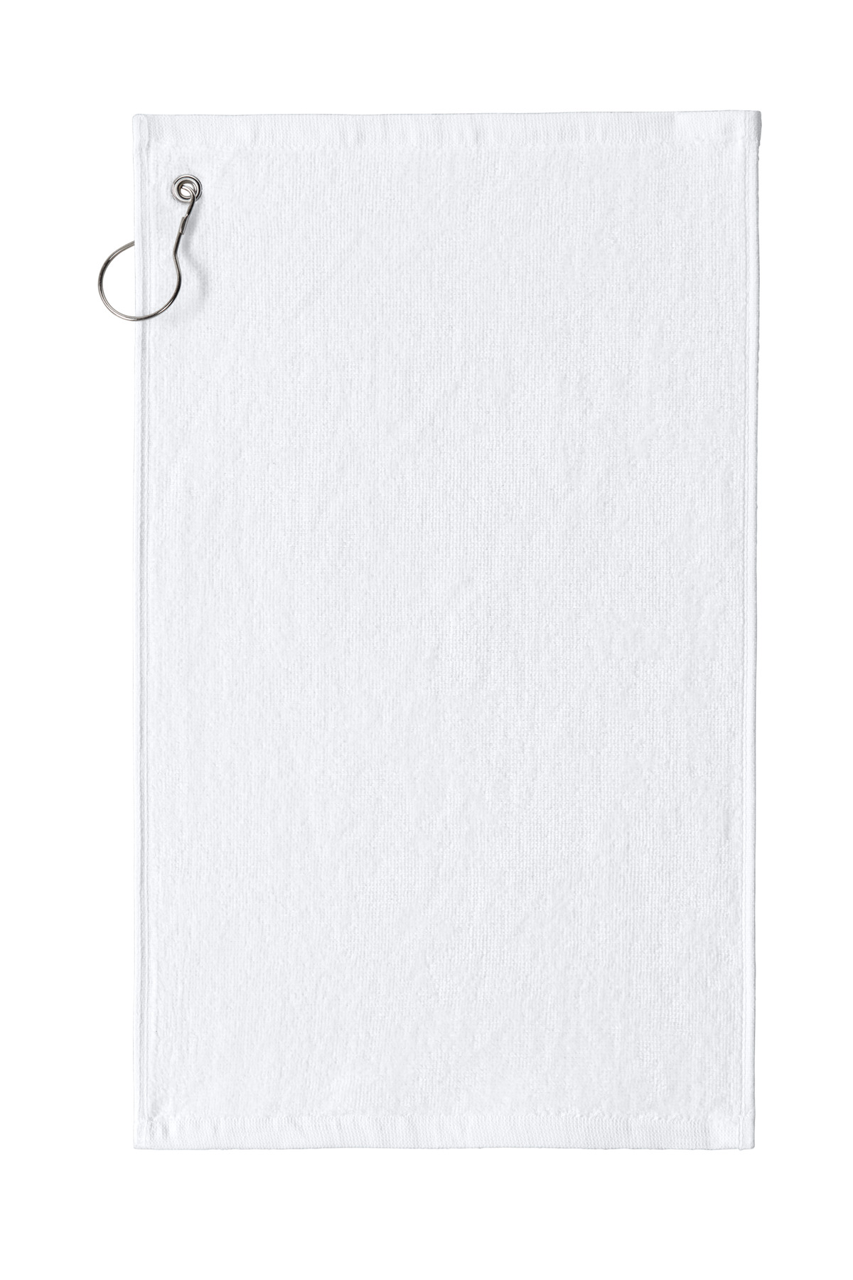 Grommeted Hemmed Towel PT400Port Authority Grommeted Hemmed Towel PT400A soft budget-friendly towel for the golf course and beyond. 100% USA cotton terry velour Corner grommet and hook Fully hemmed Dimensions: 11 w x 18 l; 1.3 lbs./doz.Product Spec SheetColor Swatch |