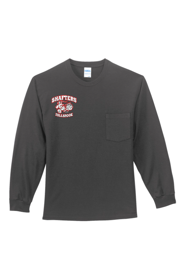 Long Sleeve T-S with Pocket-Charcoal or Black Cotton Long Sleeve T-Shirt with Pocket 6-ounce 100% US cottonNon-topstitched classic width rib collar Taped neck and shoulders Left chest pocket Rib knit cuffs Product Spec Sheet Color Swatch