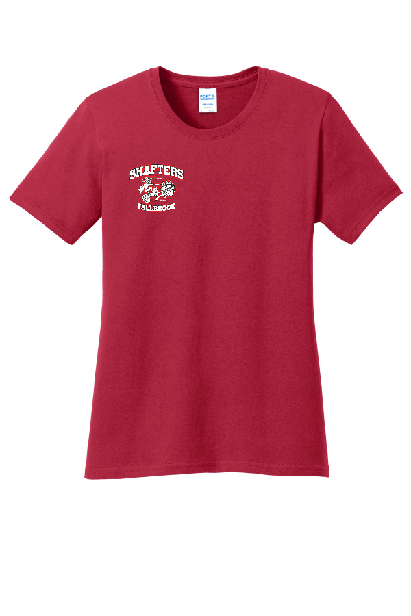 Ladies Short Sleeve Tee-Black or Red Ladies Core Cotton Tee. An indispensable t-shirt in our classic silhouette--with a very friendly price. 5.4-ounce 100% cotton Product Spec Sheet Color Swatch