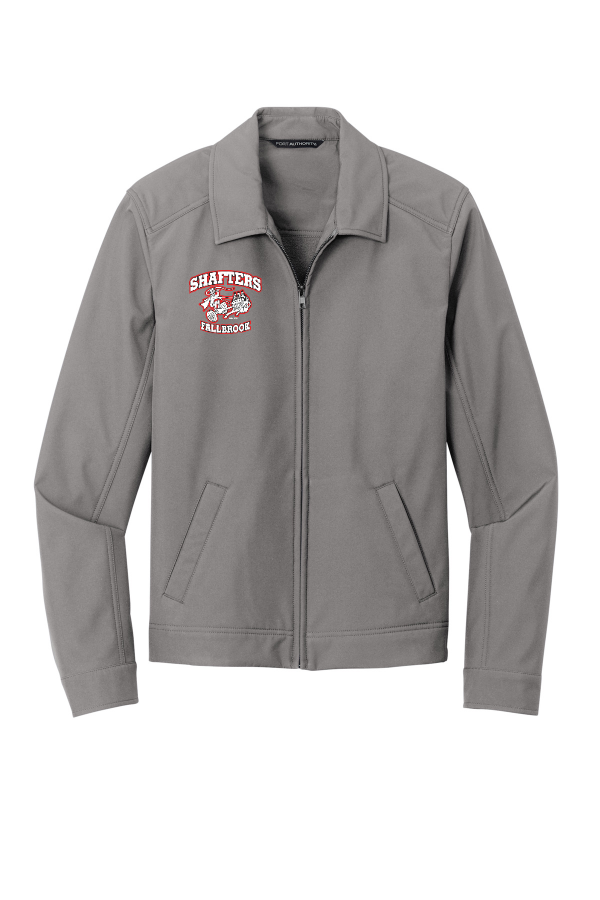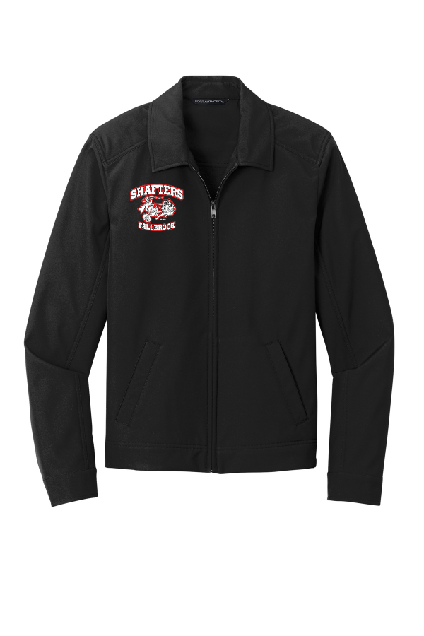 Jacket with Embroidery-Shafter's Logo Port Auth. Mechanic Soft Shell Jacket J417-Embroidery right chest logo A classic style in an updated silhouette this rugged soft shell has a clean sophisticated exterior with water- and wind-resistance so it performs in outdoor and casual workplaces. 100% polyester woven shell bonded to a water-resistant film insert and a 100% polyester microfleece lining 1000MM fabric waterproof rating 1000G/M2 fabric breathability rating Water-resistant finish Metal center front zipper Open hand pockets Adjustable snap cuffs and hem. Product Spec Sheet Color Swatch