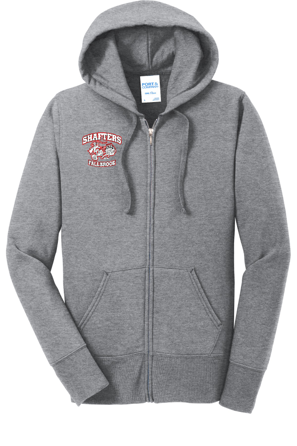 Ladies Full-Zip Hood Sweatshirt-EMBROIDERY Charcoal or Sport Grey Ladies Fleece Full-Zip Hooded Sweatshirt Cozy sweats in our core weight.7.8-ounce 50/50 cotton/poly fleece Air jet yarn for softness Jersey-lined hood with dyed-to-match drawcords Side seamed with a contoured body for a feminine fit YKK metal zipper Front pockets Product Spec Sheet Color Swatch