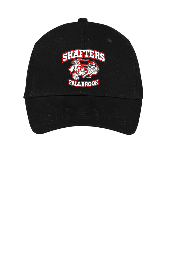Cap with Shafter's Logo Embroidery-RED OR BLACK Port Authority Brushed Twill Cap. CP82 This soft-brushed twill cap looks great wear after wear.Fabric: 100% cotton brushed twillStructure: StructuredProfile: MidClosure: Self-fabric closure with brass buckle and grommet Product Spec Sheet Color Swatch