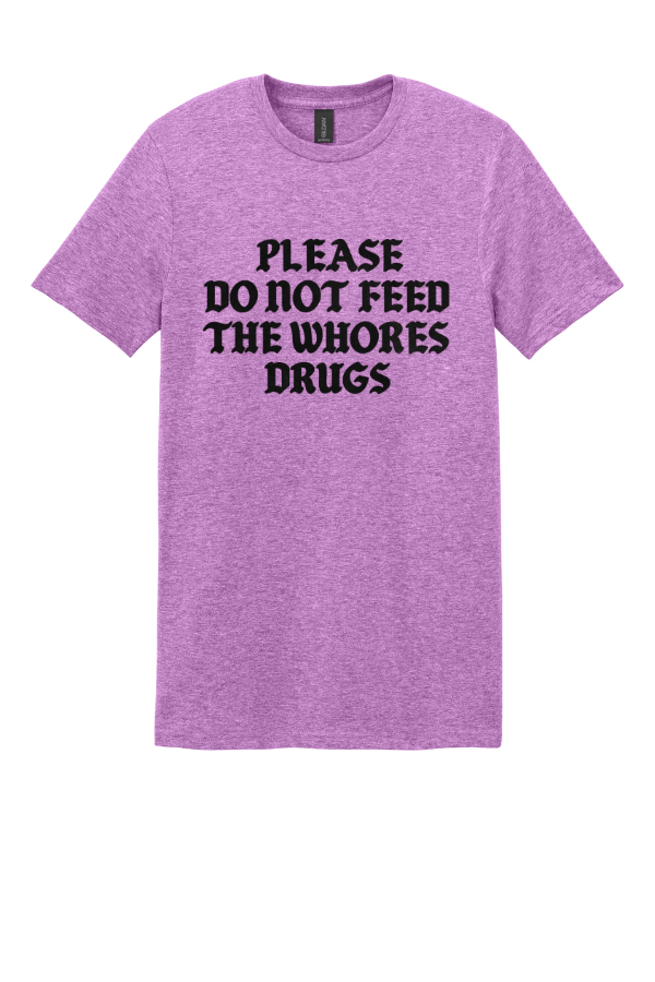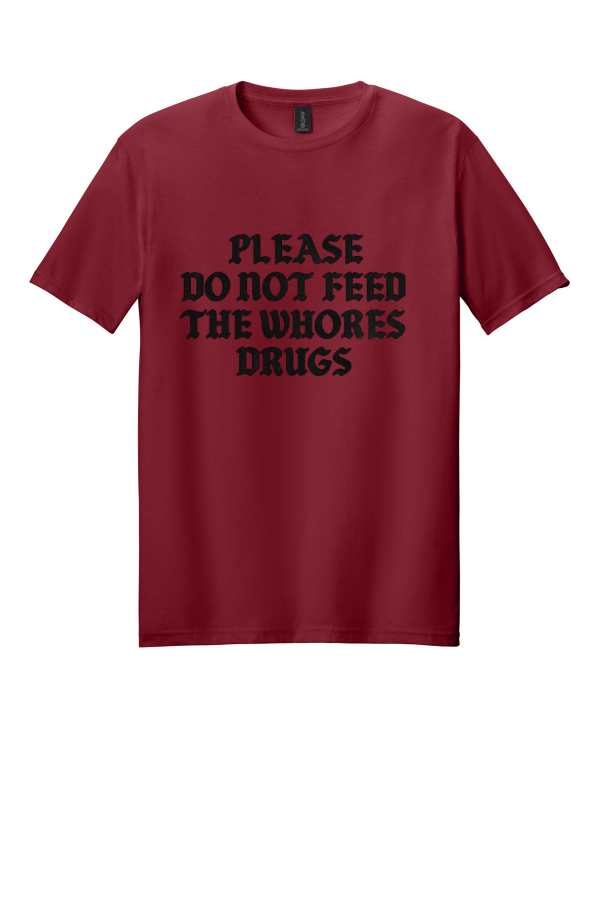 Please Do Not Feed the Whores Drugs T-Shirt Please Do Not Feed the Whores Drugs T-Shirt Made from ultra-soft, high-quality cotton/poly blend.